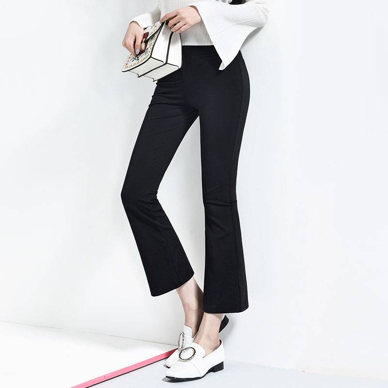 逸阳女裤春装新款韩版休闲裤女九分裤黑色弹力微喇叭裤子显瘦0032 浓郁复古风 修饰腿型 生而优雅