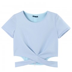 韩都衣舍2017韩版女装夏装新款纯色镂空露腰短袖T恤OU7163堯 韩版版型 时尚镂空 舒适面料 个性穿搭
