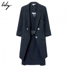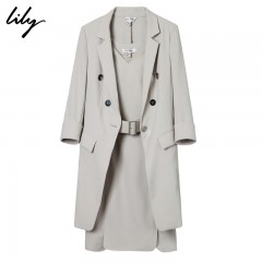 Lily2018秋新款女装V领修身职业套装连衣裙两件套118330C7607