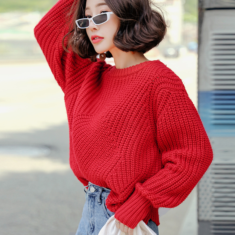 韩都衣舍秋冬喇叭长袖针织衫毛衣女套头宽松纯色百搭学生韩版打底 领券下单立减/单件包邮/先拍先发货!