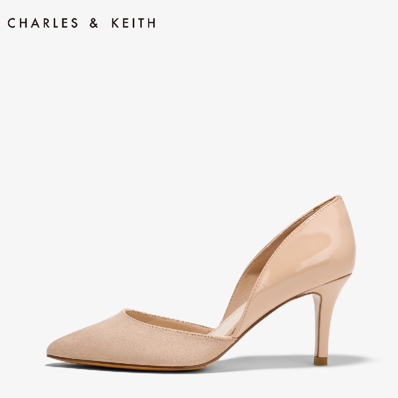CHARLES&KEITH高跟鞋CK1-60360888尖头女单鞋绒面漆皮拼接奥赛鞋