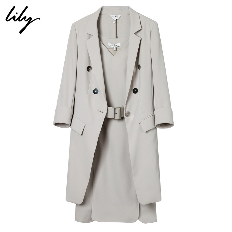 Lily2018秋新款女装V领修身职业套装连衣裙两件套118330C7607